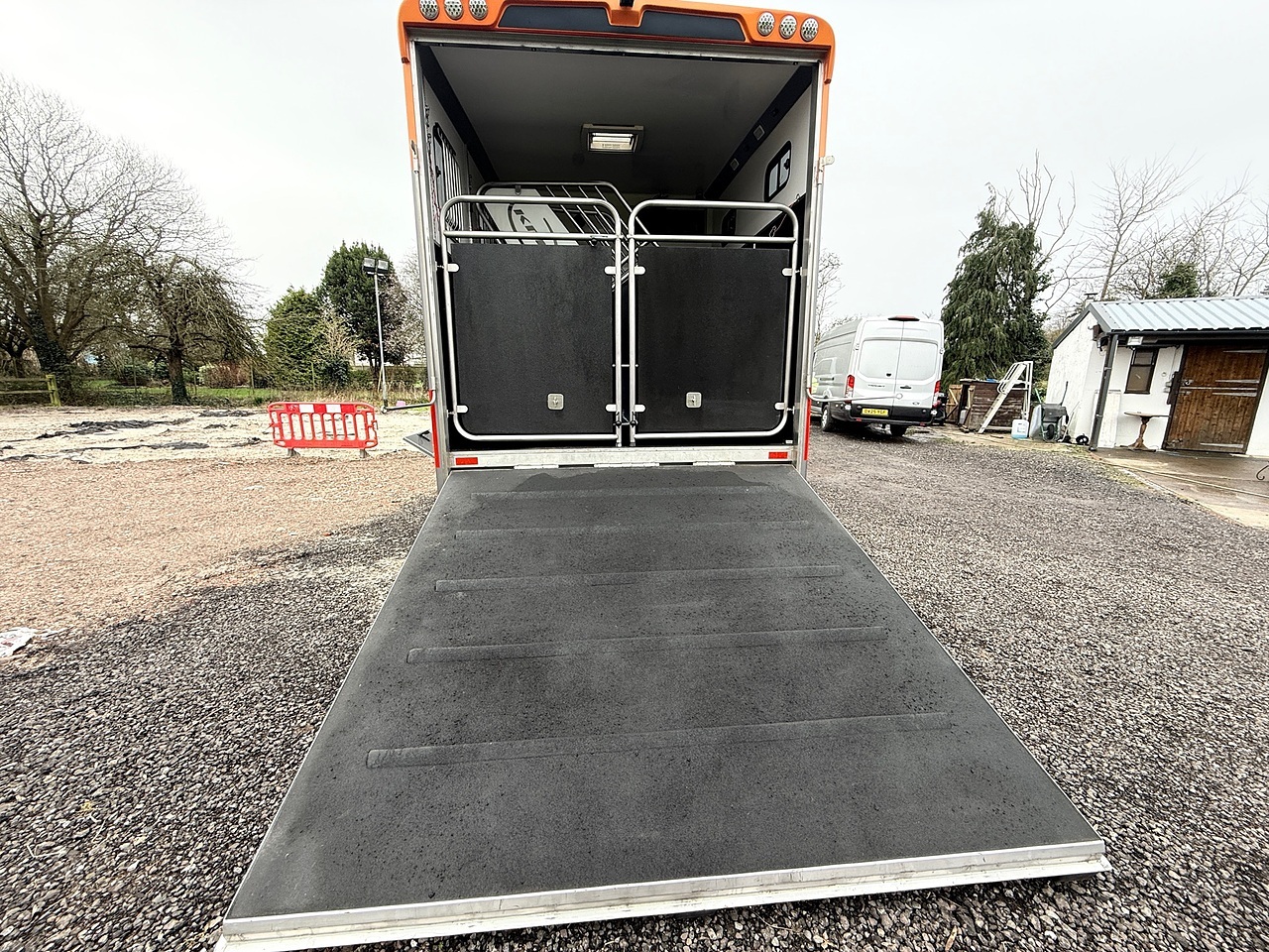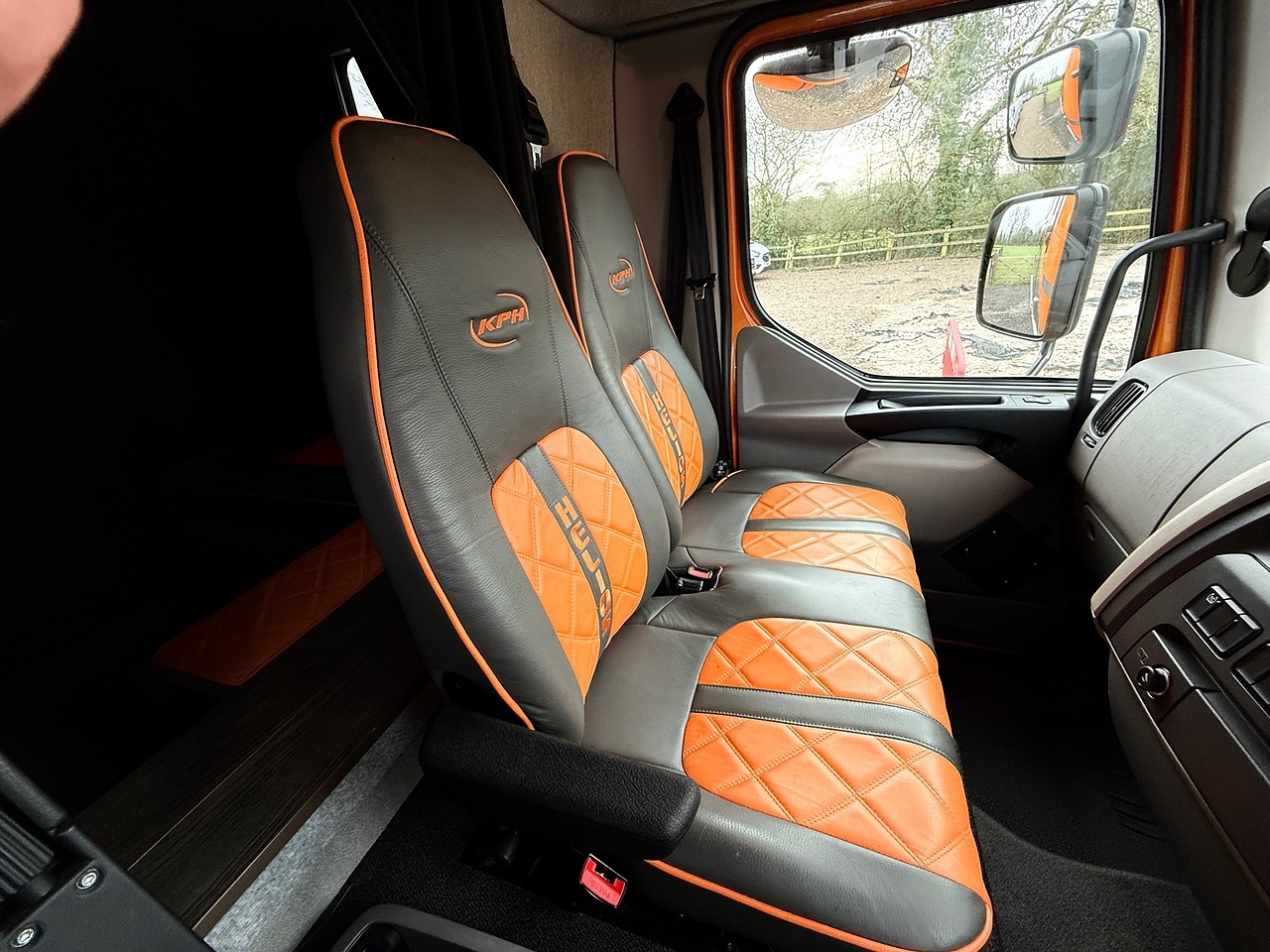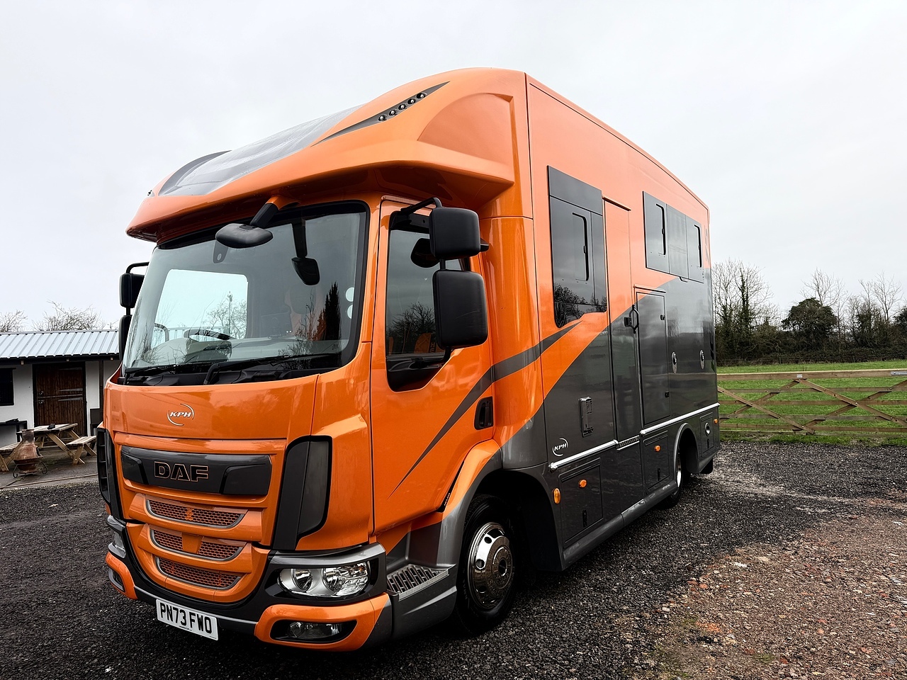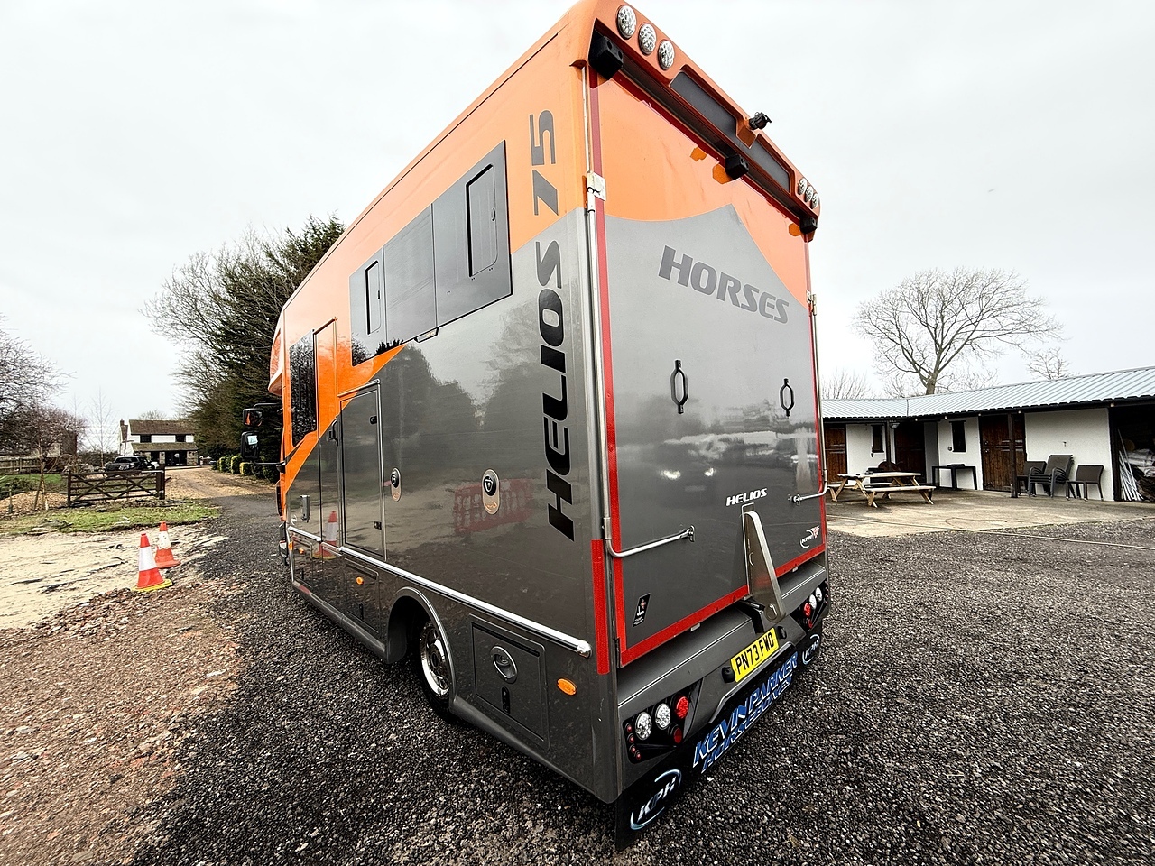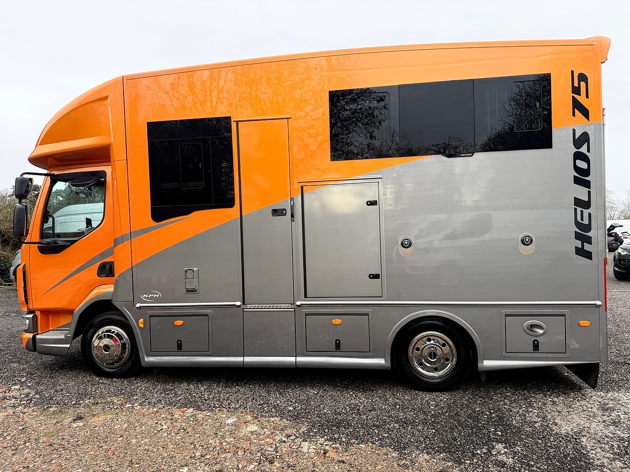 Be the envy of your fellow Equestrians with this absolutely stunning DAF Helios 75 Horse Box buillt by Kevin Parker Horseboxes. Finished in an Orange Pearl and Metallic Grey Exterior. This Stunning Horse Lorry comes with automatic transmission and a powerful euro 6, diesel engine. With only 1 previous owner, It has very low mileage of 7662KM's and is in pristine condition. The interior features luxurious diamond stitch Orange and Grey Leather for added comfort, and a fabulous look, it has a Reversing Camera, air con, and fitted out with the highest quality conversion, Including an electric Rear Door/ramp, ample stoage, a rug Heater, Superb Living quarters with a Double Bunk, Kitchenette, Fridge, TV, Toilet and Shower Unit, Wash Basin, Digital Control Panel,Dash Mounted Monitor to keep an eye on your Horses in the rear whilst on the go, Full Led Lighting inside and out, all built to a very high standard.